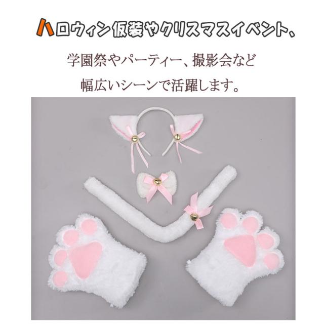 商品名 | ハロウィン 猫 コスプレ レディース 女の子 4点セット 猫耳カチューシャ 蝶ネクタイ 肉球手袋 しっぽ 鈴付き リボン付き 萌え猫 ロリータ風 ねこコスチューム 黒 白 クリスマス 学園祭 パーティー |