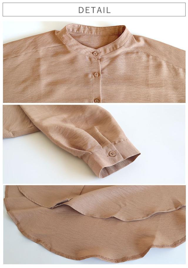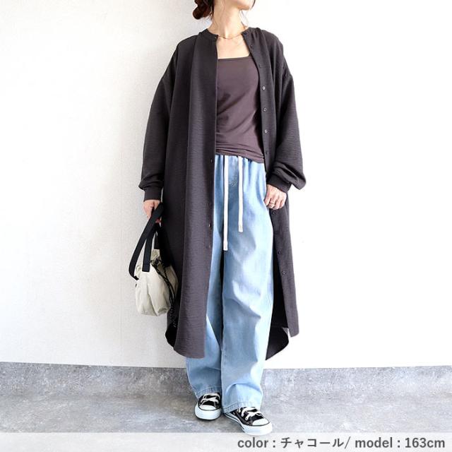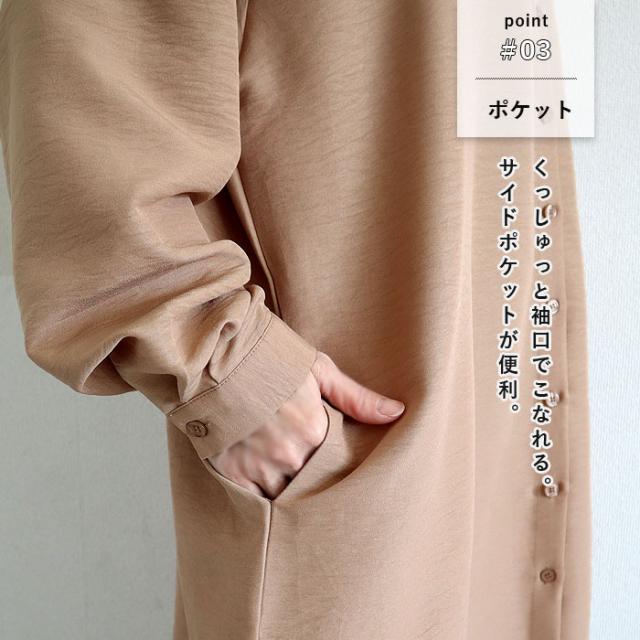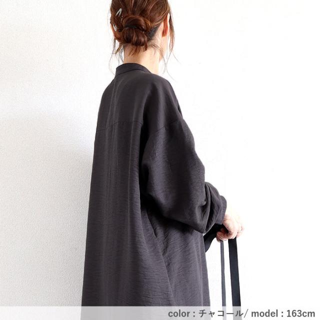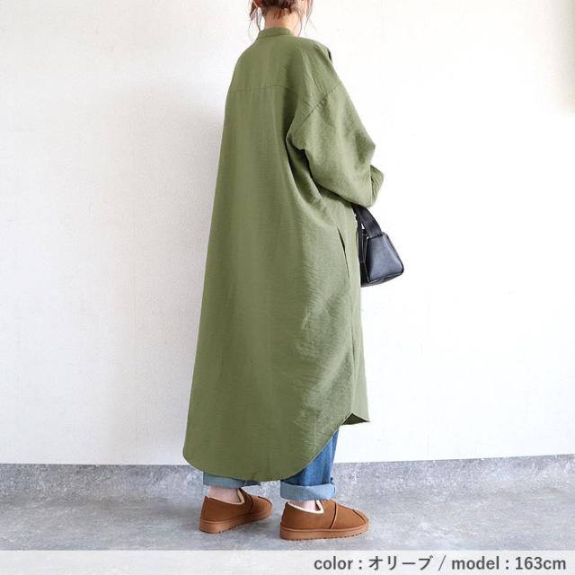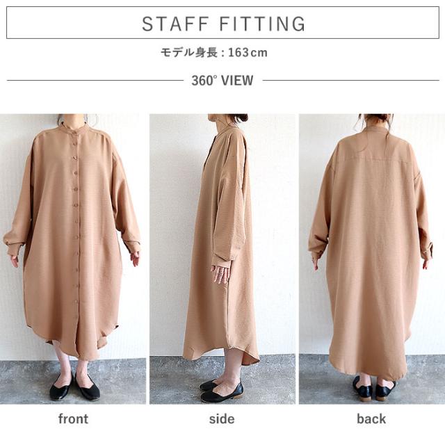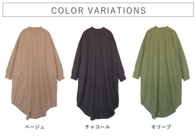 冬新作 ワンピース レディース シャツワンピース 春 秋 無地 おしゃれ 長袖 ロング丈 ノーカラー シワ加工 重ね着 シンプル[郵3]^w726^ ★
