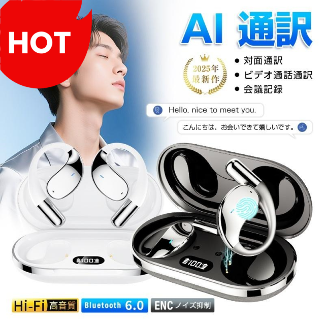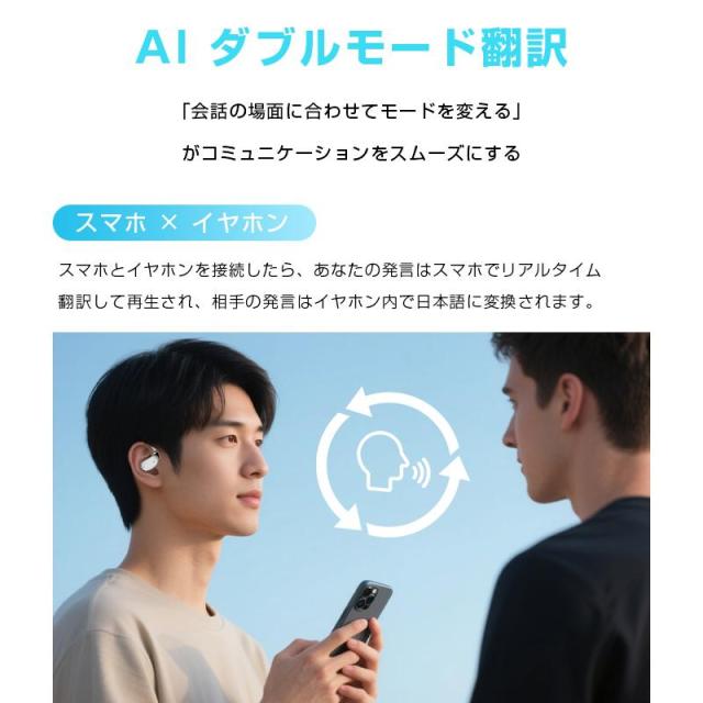 AI翻訳ワイヤレスイヤホン ヘッドセット Bluetooth6.0 耳を塞がない ノイズキャンセリング 2025最新 小型
