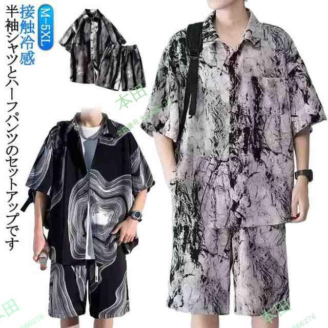 半袖シャツ 薄手 カジュアル 上下セット 接触冷感 2点セット ショートパンツ セットアップ Tシャツ アロハシャツ アロハシャツ ビーチ ハーフパンツ 短パン 絞り染め メンズ 部屋着 ルームウエア 開襟シャツ 大きいサイズ ゆったり 軽量 夏 メンズファッション