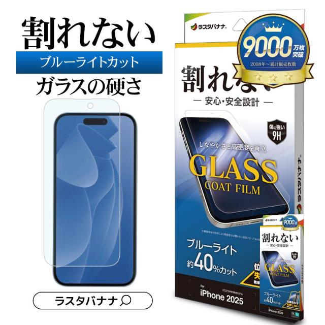 【送料無料】iPhone17 iPhone17 Pro フィルム 平面保護 ブルーライトカット 高光沢 ガラスコート 割れない 0.24mm 硬度9H ガイド枠付き アイフォン 保護フィルム ラスタバナナ AE4910IP5A AE4978IP5B