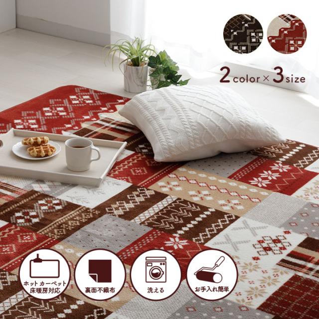 ラグ 洗える ラグマット 1畳 北欧 「 チャーム 」 約90×130cm ホットカーペットカバー 床暖房対応 ノルディック柄 フランネル マット カーペット 新生活