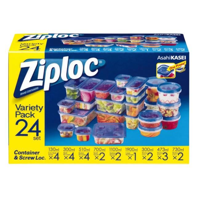 ジップロック Ziploc バラエティーパック コンテナー アソートセット 24個セット プラスチック製 保存容器 パック 正方形 長方形 耐熱 冷凍 電子レンジ対応 食品 食材保存 コストコ キッチン 冷蔵庫 冷凍庫 保存
