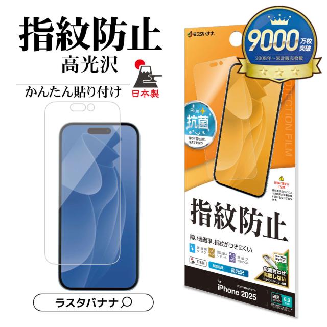 iPhone17 iPhone17 Pro フィルム 平面保護 高光沢 指紋防止 高透明 クリア 日本製 抗菌 貼り付けガイド 割れない アイフォン 保護フィルム ラスタバナナ