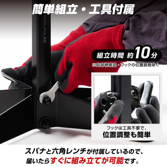 PEDALPULSE 自転車 メンテナンススタンド ロードバイク スタンド フック掛け式 高さ調節可能 整備スタンド スチール製 組立工具付属