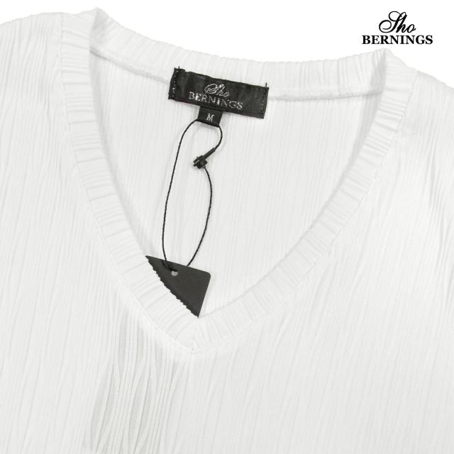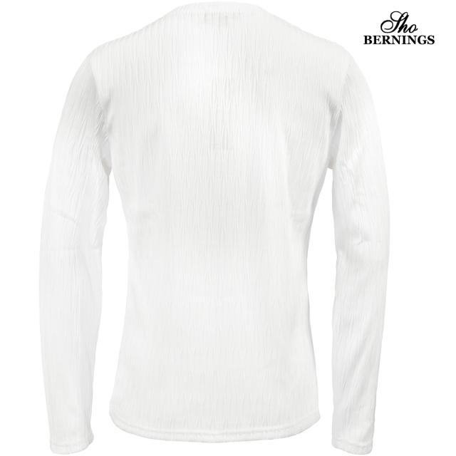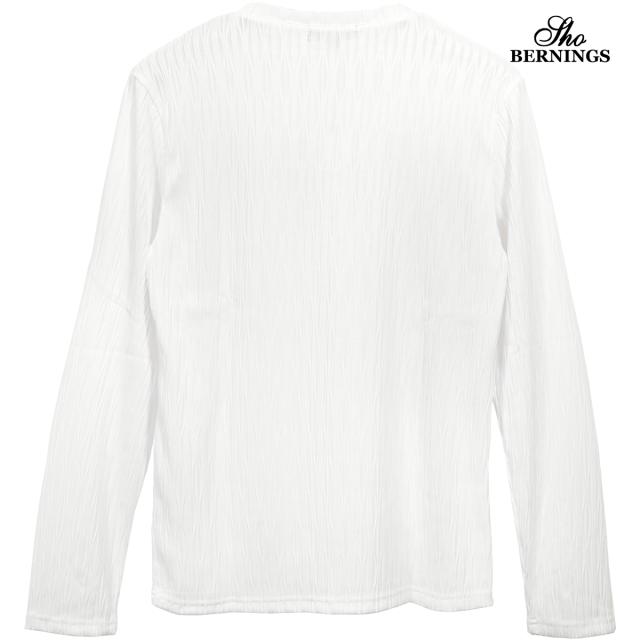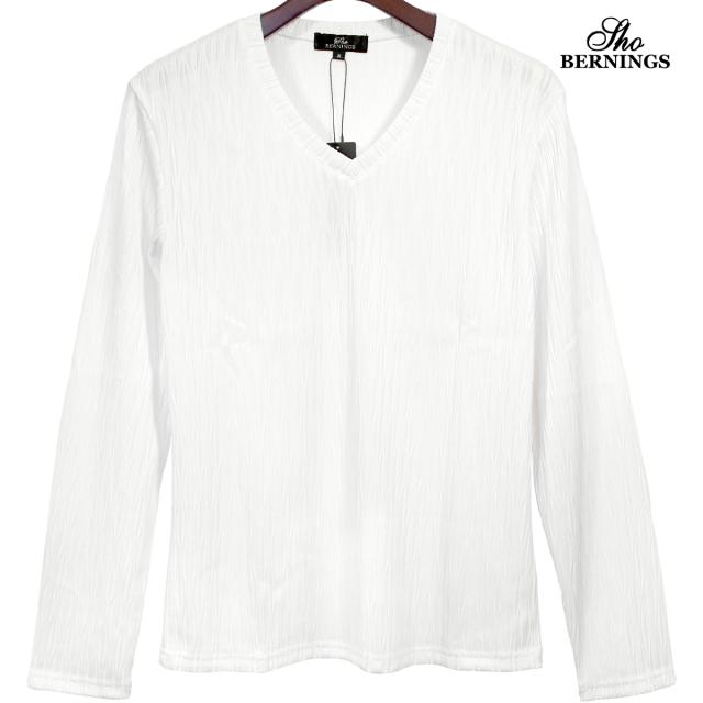 Tシャツ 長袖 Vネック ウェーブ柄 ふくれジャガード 薄手 カットソーメンズ シンプル ロンT(ホワイト白) 361453