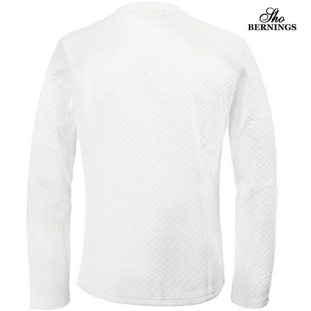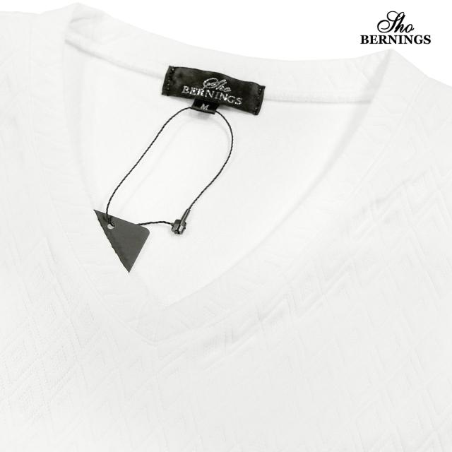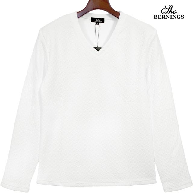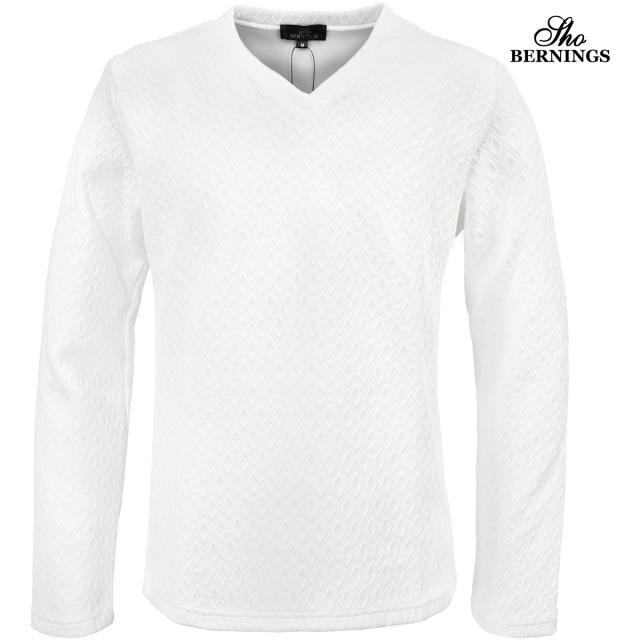 Tシャツ 長袖 Vネック ダイヤ柄 ふくれジャガード メンズ シンプル ロンT(ホワイト白) 360953