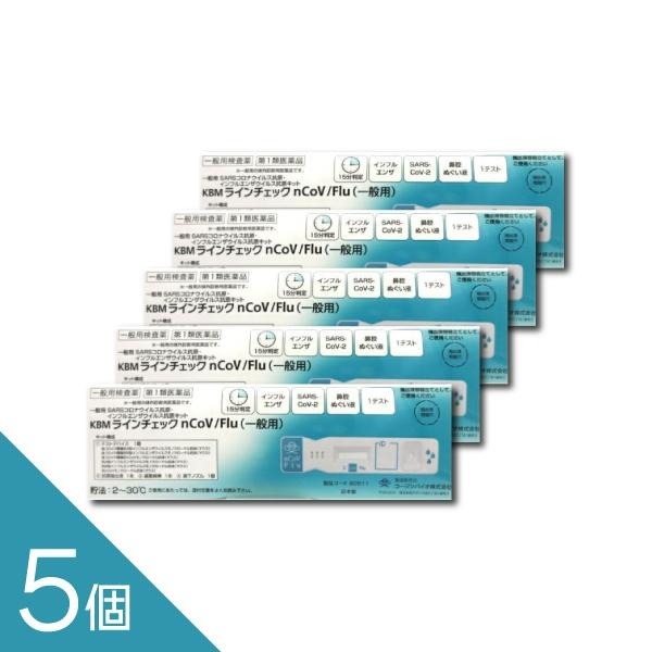 インフルエンザ コロナ 同時検査キット <5個セット> 15分判定 【第1類医薬品】『KBM ラインチェック nCoV/Flu(一般用) 1回用』 抗原検査キット インフルエンザ検査キット 及び コロナウイルス同時検査キット 新型コロナ