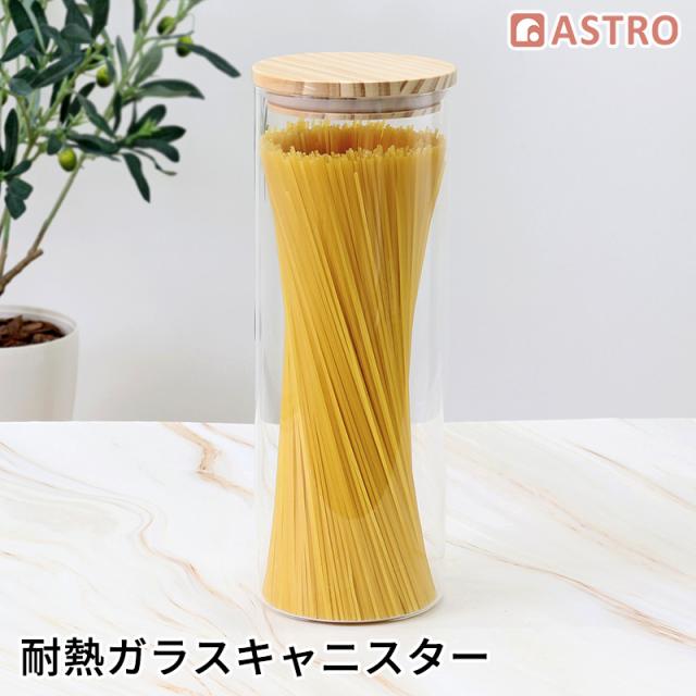 耐熱ガラス 【 パスタ 保存容器 大容量 1700ml 】 キャニスター コーヒー 乾物 穀物 保管 パスタケース 耐熱 耐冷 ガラスキャニスター 電子レンジ可 木蓋 キッチン 収納 瓶 アストロ 515-02