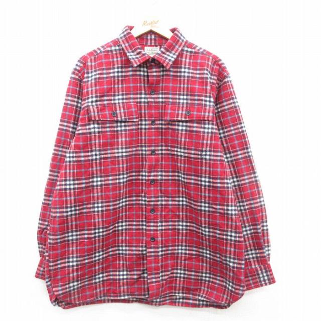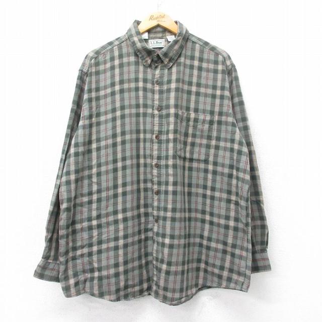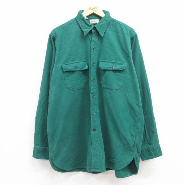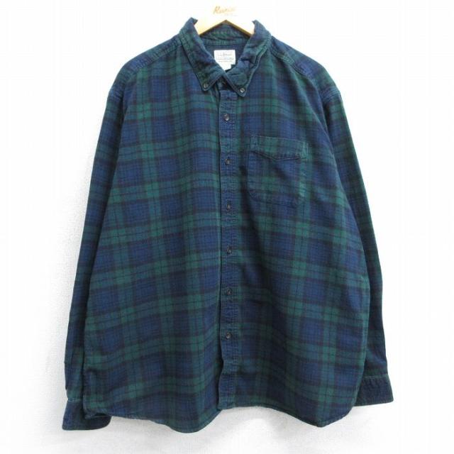古着 エルエルビーン LLBEAN 長袖 ヘビー フランネル シャツ メンズ 80年代 80s コットン 薄紺 ネイビー XLサイズ 中古 トップ 中古 古着