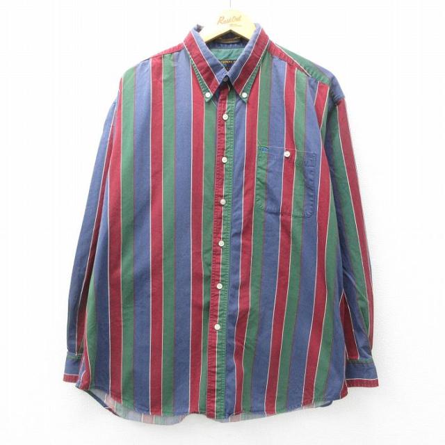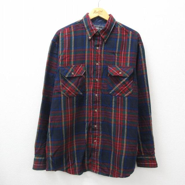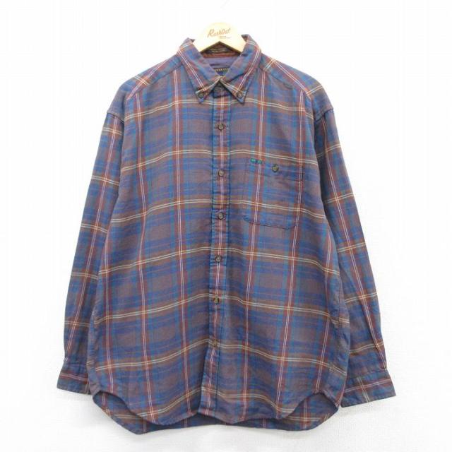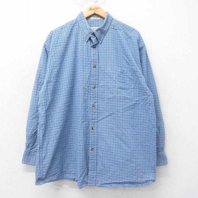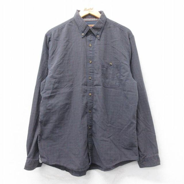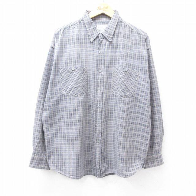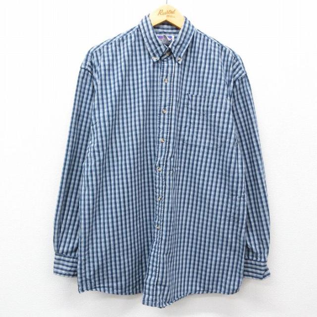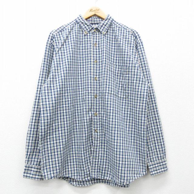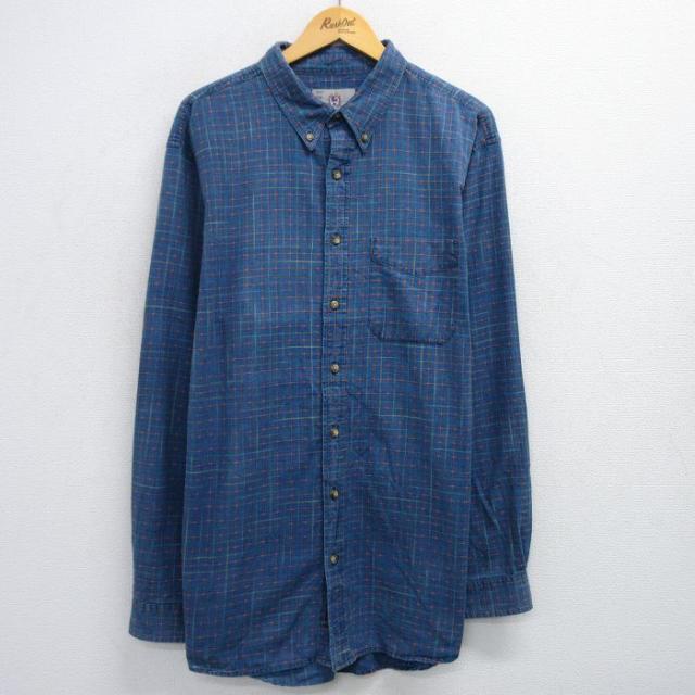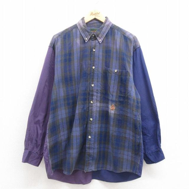 古着 長袖 シャツ メンズ 00年代 00s クレイジーパターン コットン ボタンダウン 紺他 ネイビー チェック XLサイズ 中古 トッ 中古 古着