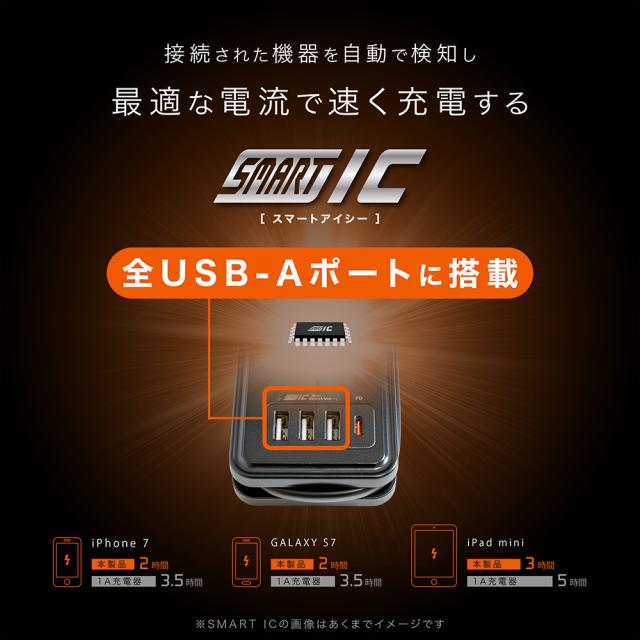 | USB-AポートにはスマートICを搭載。スマートICは接続機器を自動で判別し、最適な電流を流すことができますので、