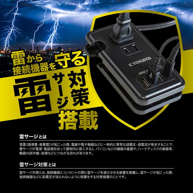 | 雷から接続機器を守る 雷サージ対策搭載 |