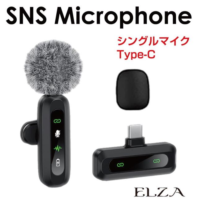 ワイヤレスマイク ピンマイク ワイヤレス Typy-C / Lightning ウィンドウマフ シングルマイクセット SMS-TC1 | 2in1 タイプC ライトニング iPhone iPad android ノイズ軽減 ノイズキャンセリング クリップ式 高音質 無線 風防 集音マイク アプリ不要 簡単接続