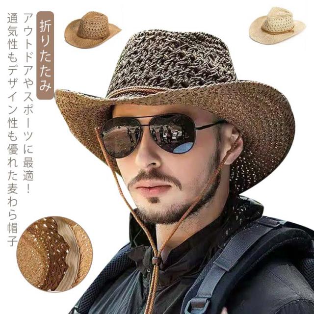 麦わら帽子 メンズ アウトドア 釣り 農作業 帽子 春 夏 ストローハット 大きいサイズ 夏用 ハット 夏 日よけ対策 麦わら帽 紳士 ナチュラル 通気 蒸れない 日除け つば ハット帽子 折りたたみ uvカット 軽量 旅行 リゾート あご紐付き ギフト プレゼント 送料無料