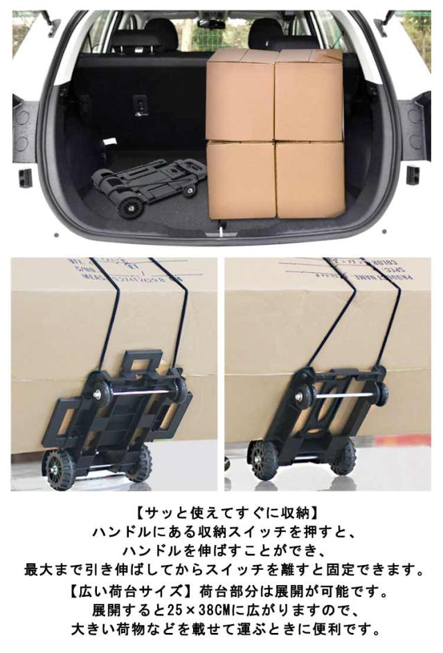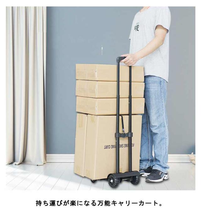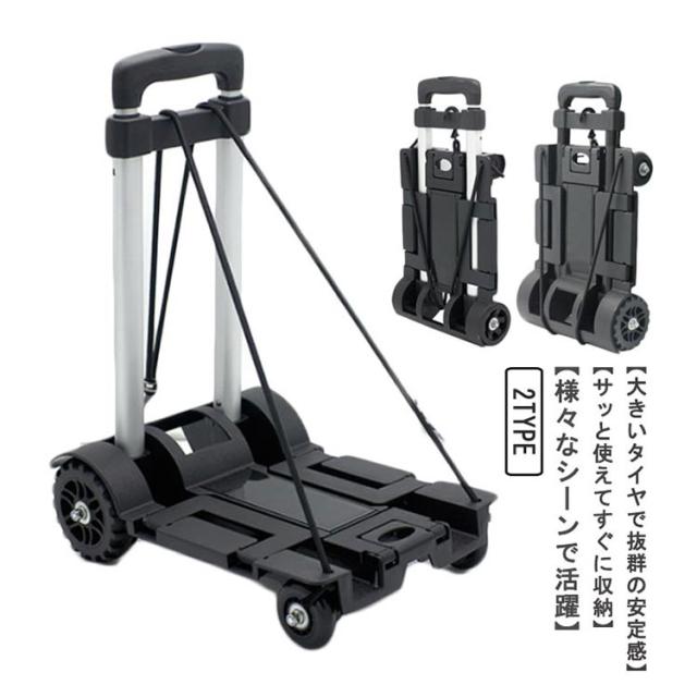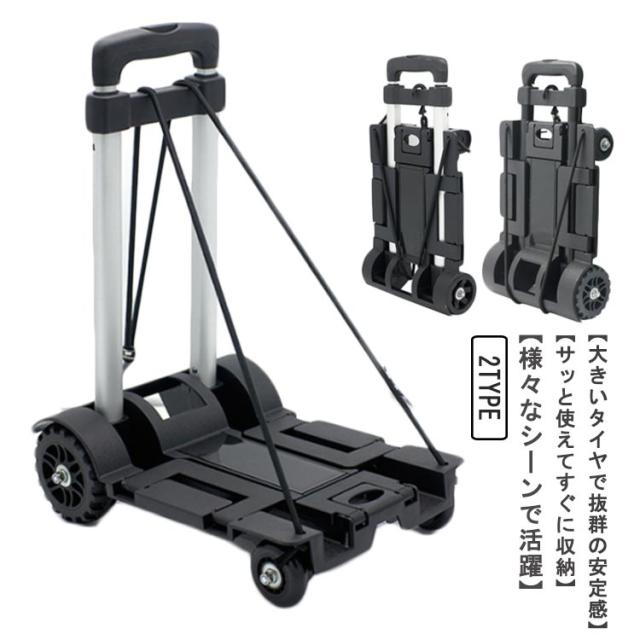 台車 折りたたみ キャリーカート 台車 折りたたみ式 超コンパクト 静音 軽量 ハンドキャリー 折り畳み 滑り止め 大型タイヤ 4輪 固定ロープ付き 運動会 買い物 引っ越し 荷物運び用 カート アウトドア 頑丈 運搬 キャンプ