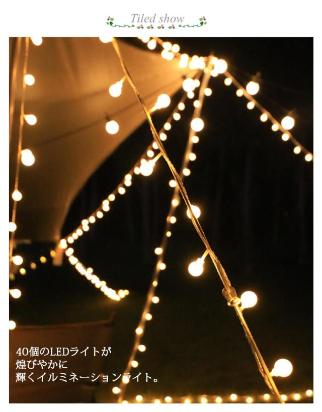 イルミネーション ライト LED 40球 6m キャンプ 電飾 電球 ガーランド ライト アウトドア フェアリー 飾り ガーランドライト キャンプライト テント 飾り ストリングライト ジュエリーライト デコレーションライト ワイヤーライト ロープライト 防水 電池式 屋外 室内