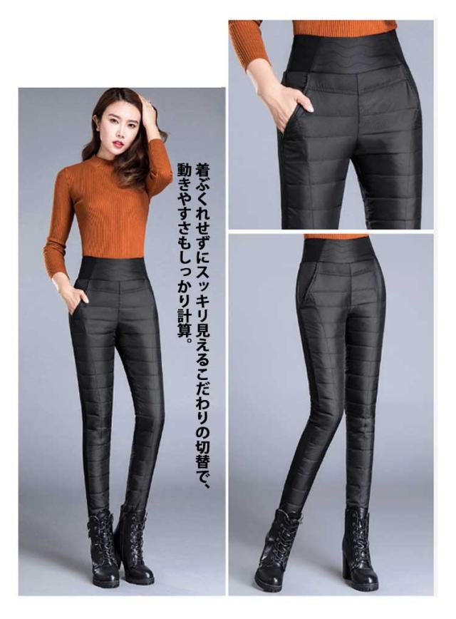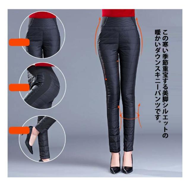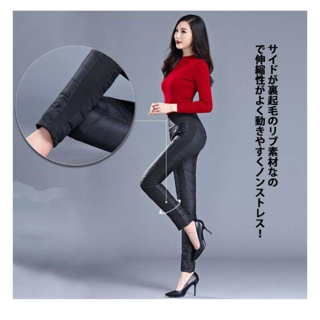 ゴルフウェア レディース ダウンパンツ 防寒 ロング パンツ 美脚 伸縮性 スキニーパンツ スリム 細身 サイドリブ ストレッチ 大きいサイズ 防水 ハイウェスト ウェストゴム ポケット付き ウォッシャブル 洗濯機OK 暖かい 動きやすい