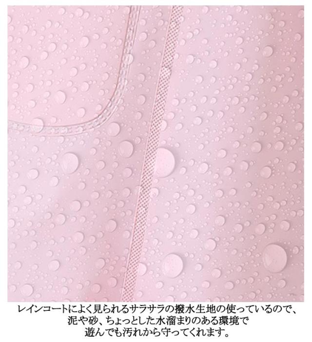 | 汚れに強い撥水加工のお砂場着。胸まであるので安心。子供のお砂場遊びや雨の日のお出かけに役立つプレイウェア。 レインコートの下に着たらレインパンツとしても大活躍! レインコートによく見られるサラサラの撥水生地の使っているので、泥や砂、ちょっとした水溜まりのある環境で遊んでも汚れから守ってくれます。 肩のストラップはアジャスター付きで成長に合わせて調節可能。 | |