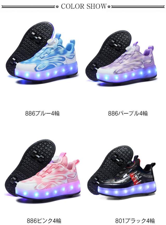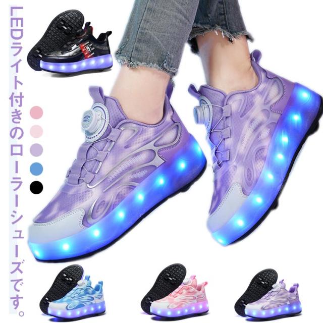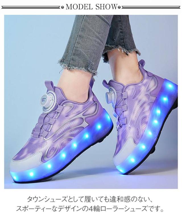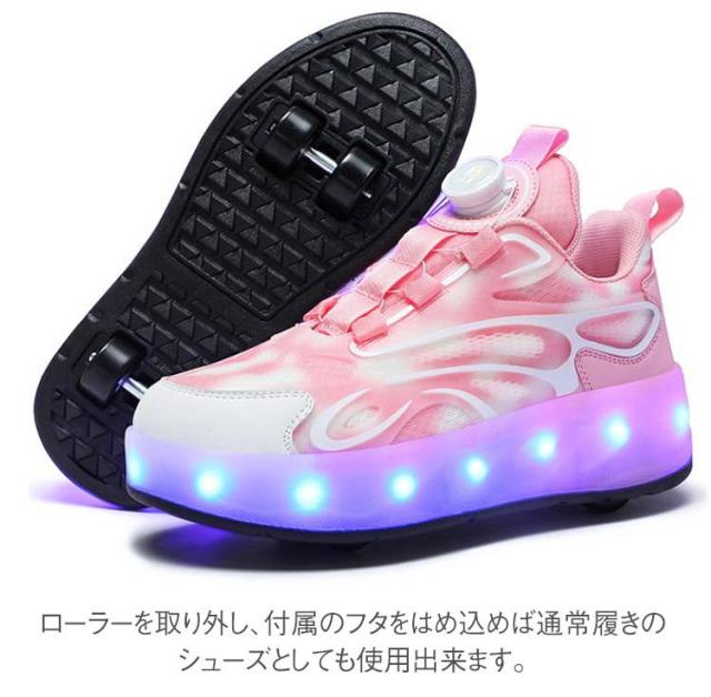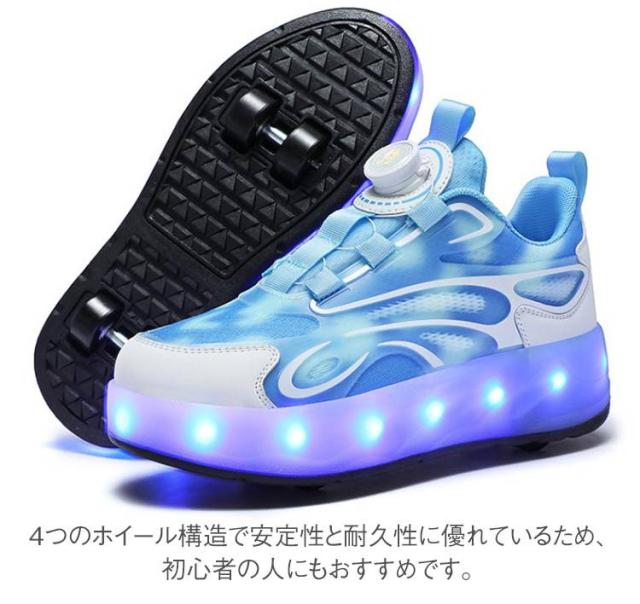 USB充電式 ローラーシューズ ダイヤル式 カジュアル 4輪 取り外し可 キッズ 靴 スポーツ スニーカー 運動靴 光る ウォーキングシューズ キッズスニーカー 学生 紐なし 女の子 子供靴 男の子 ローラースケート ジュニア 光る 通学 初心者 誕生日 子供の日