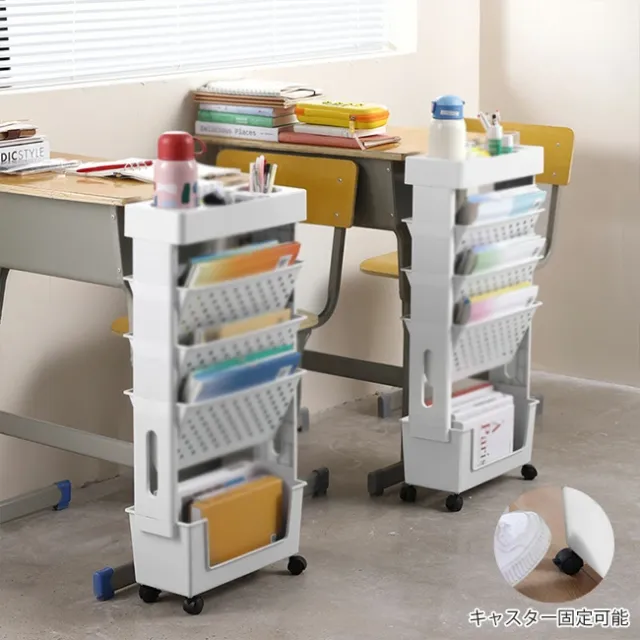 新作本棚 一部書類棚 収納チェスト5層 キャスター付き 大容量 チェストキャスター付き 収納ラック ファイルワゴン 卓上収納 デスク整理 組立式 省スペース 組立簡単 書類 文具 雑誌 学生 オフィス/学校用