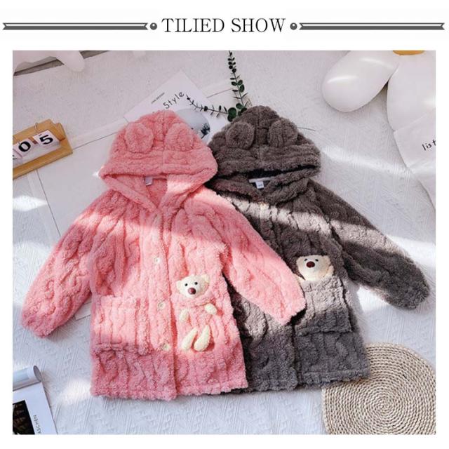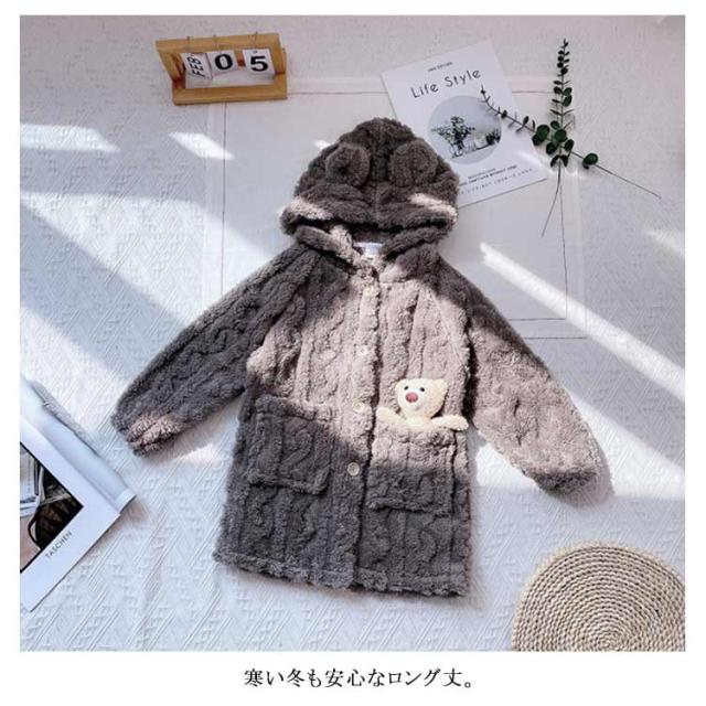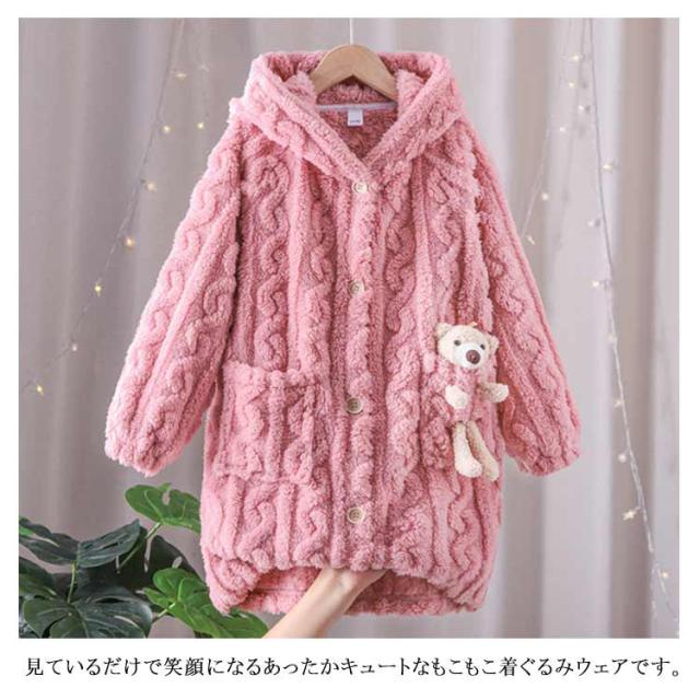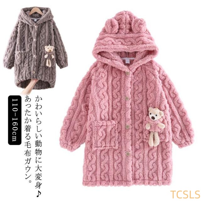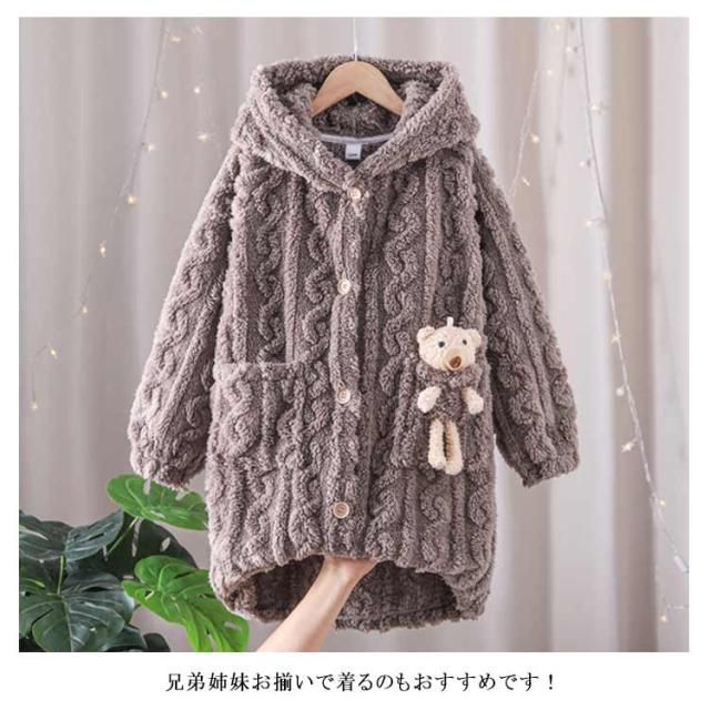 着る毛布 子供 ルームウェア ガウン フード付 着ぐるみ ナイトウェア キッズ 長袖 前開き ロング丈 ボタン 女の子 男の子 暖かい 防寒 出産祝い プレゼント 冬 無地 全2色