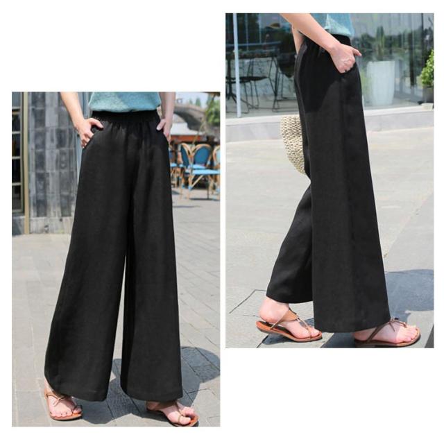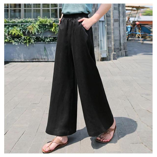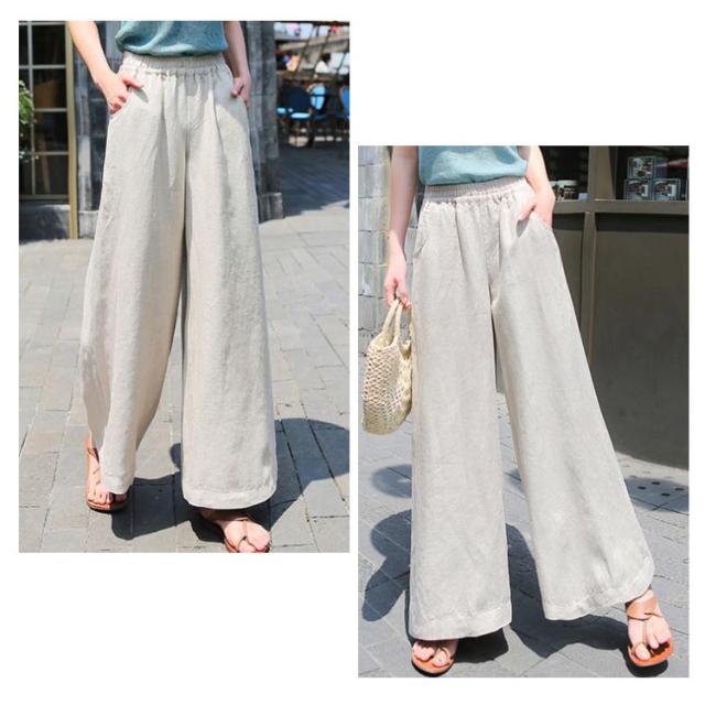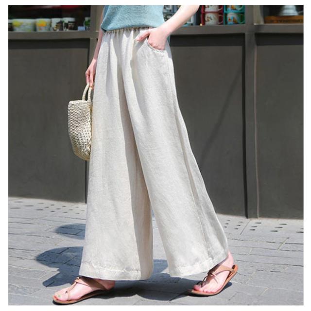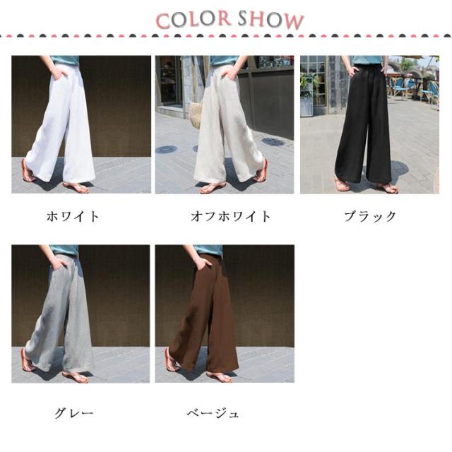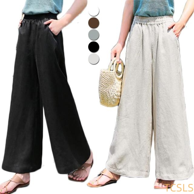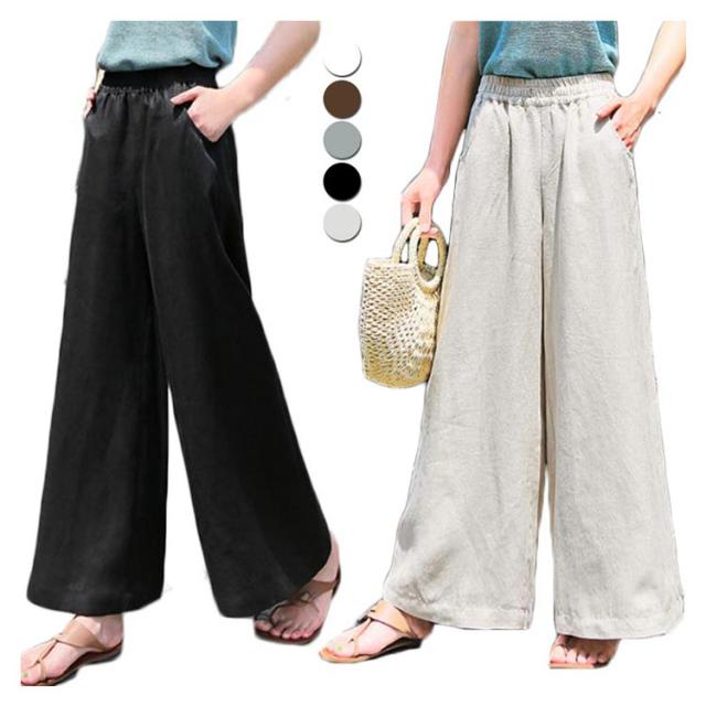 リネン パンツ レディース コットン ワイドパンツ ウエストゴム リネンワイドパンツ 送料無料 ボトムス ロングパンツ 無地 カジュアル 可愛い 大きいサイズ シンプル