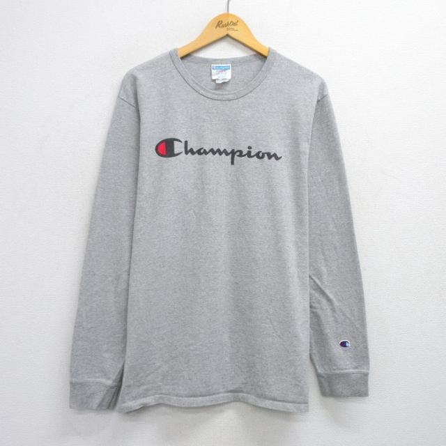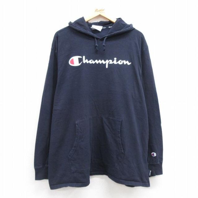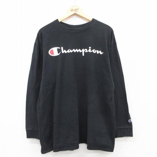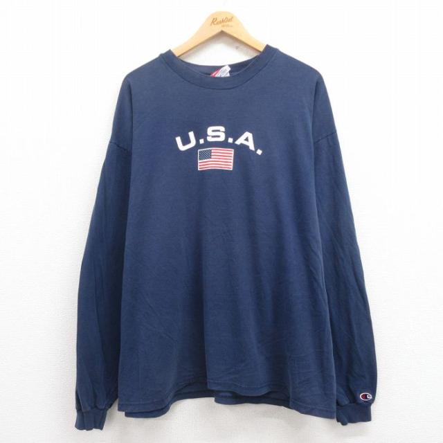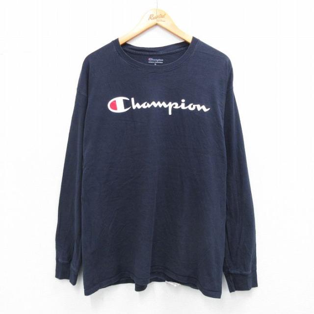 古着 チャンピオン champion 長袖 Tシャツ メンズ ビッグロゴ コットン クルーネック 紺 ネイビー XLサイズ 中古 中古 古着
