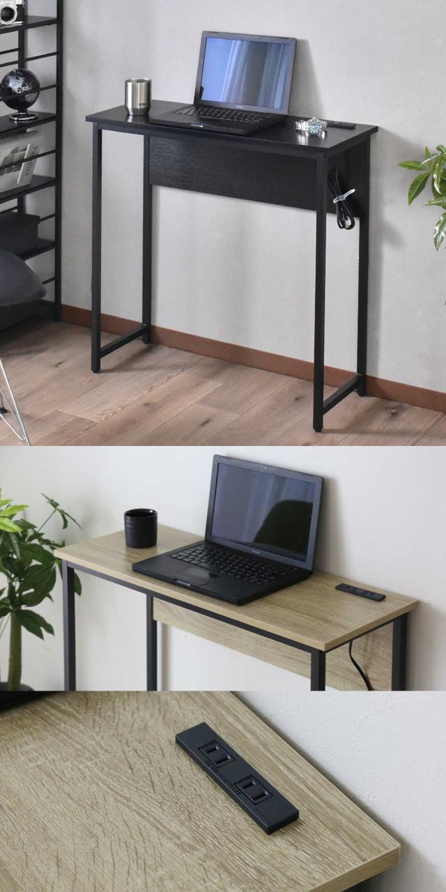 デスク パソコンデスク 幅80cm 奥行30cm コンパクト スリムタイプ 省スペース 薄型 木目調 コンセント付き PCデスク 机 勉強机 学習机 リビング pcデスク ワークデスク 机 オフィスデスク 木製デスク パソコン台 シンプル 北欧 モダン スペパ 新生活 ノクサ ドリス 送料無料