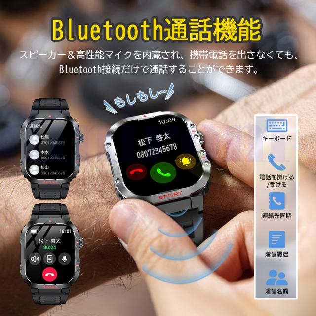 スマートウォッチ 軍用規格 血圧測定 血中酸素 心拍数 懐中電灯 通話機能 GPS運動記録 ATM防水 着信通知 長持ちバッテリー 健康管理 スポーツウォッチ ギフト
