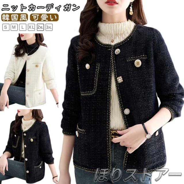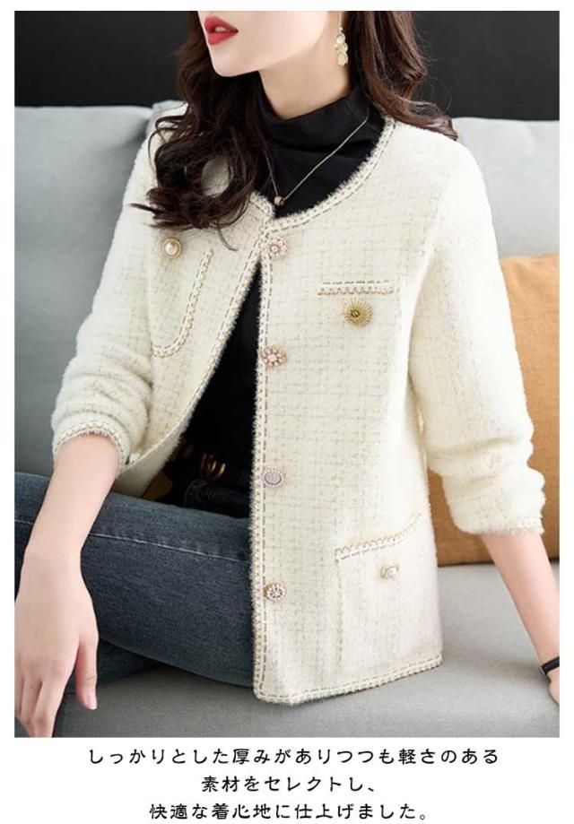 アウター ツイード レディース ニット ジャケット 秋冬 長袖 ノーカラージャケット フォーマル ゆったり 大人 カーディガン 韓国風 七五三 レディース きれいめ ボレロ