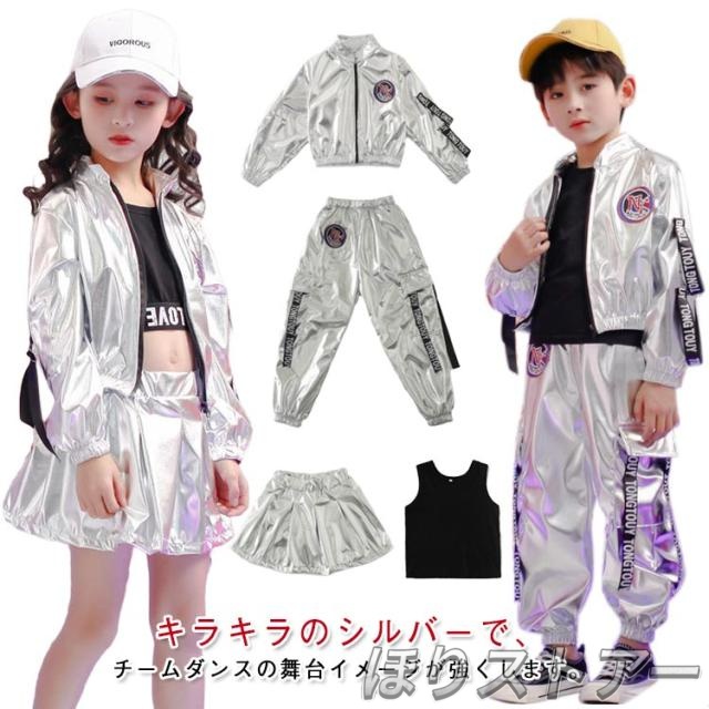 長袖 ヒップホップ 衣装 シルバー シルバー ジャケット 女の子 ベスト スカート メタリック 男の子 ダンス衣装 衣装 子供 子ども ダンス キッズ ダンス 韓国 子供服 B系 ストリート 社交ダンスシンプル チアリーダー チアパン 舞台衣装 キラキラ 目立つ