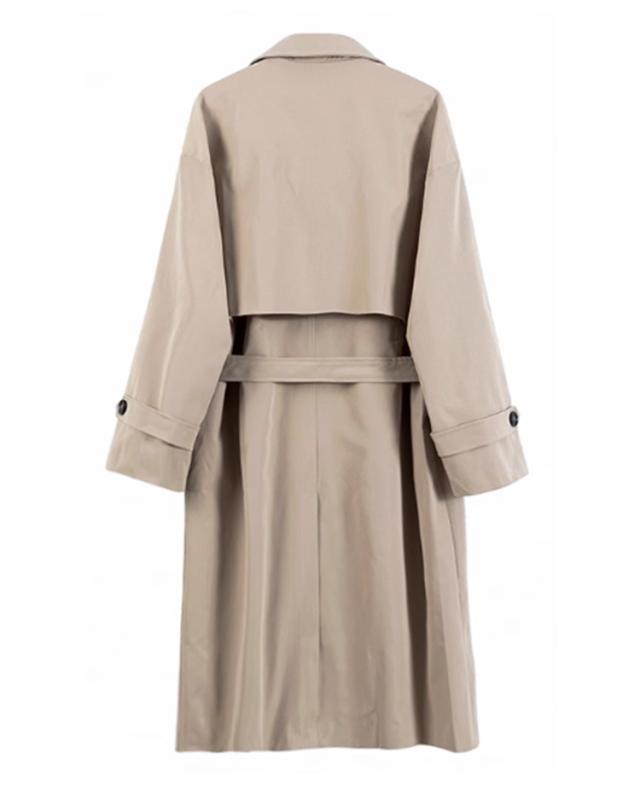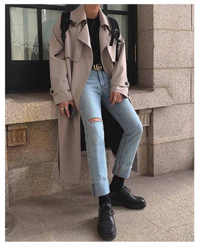 | スタイリッシュなロング丈トレンチコートです。 ひざ下丈のロング丈、ウエストベルトを装備したダブルトレンチスタイル。 袖口にベルトが付いているのが特徴です。ベルトを締めれば、風の侵入を軽減できます。 秋から春にかけてのロングシーズンにわたって着用できるアウターです。 | |