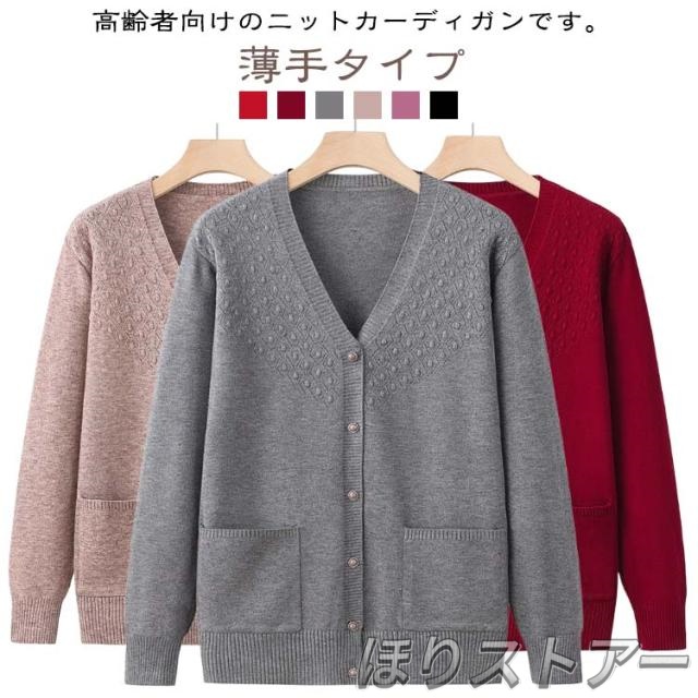 シニアファッション 薄手 60代 春 婦人 ニットカーディガン ニット 前開き 羽織り Vネック 90代 カーディガン トップス おばあちゃん 老人 シニアファッション 80代 ミセス 祖母 お年寄り 高齢者 秋冬
