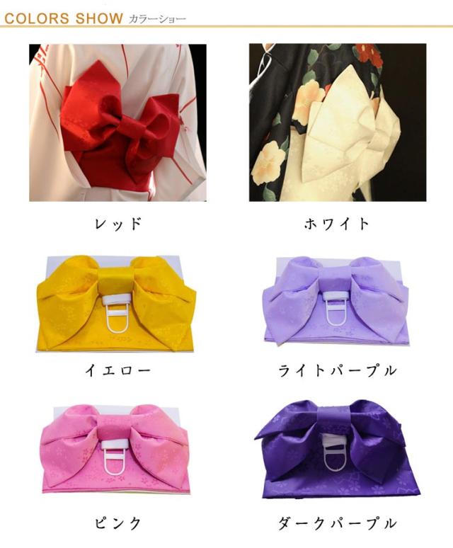 レッド 桜 リボン型 レディース 浴衣帯 大人 リボン型 花 ゆかた帯 夏着物 リボン 簡単装着 ジュニア ゆかた 単品 性用 浴衣 単品 夏着物 作り帯 結び帯 和装 初心者向け 結び帯 パープル ホワイト ピンク