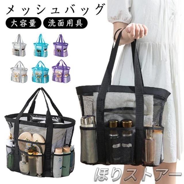 メッシュバッグ トートバッグ メッシュ メッシュトート ポケット付き エコバッグ 大容量 かばん ジムバッグ トート スパバッグ サウナバッグ ビーチバッグ プールバッグ 公園 砂場 水泳 温泉 お風呂