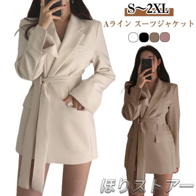 上着 Aライン 秋冬 きれいめ 韓国 体型カバー フェミニン 冬服 春服 ジャケット ブレザー スーツジャケット 大人女性 スプリングコート レディース アウター カジュアル 上品 長袖 ロング丈 秋服 着?せ 20代 30代 40代 フォーマル セレモニー 通勤 無地 シンプル
