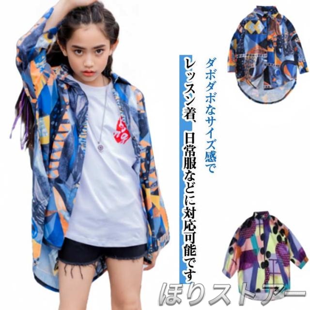 原宿系 男の子 キッズダンス衣装 ゆるシャツ 韓国 女の子 柄シャツ カラフル トップス カラフルシャツ 花柄 ダンス衣装 シャツ K-POP ゆったり ヒップホップ キッズ ストリート 可愛い 韓国 柄シャツ 110 120 130 140 150 160