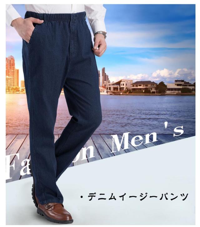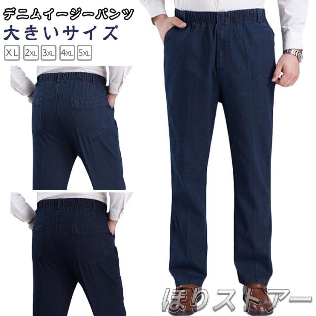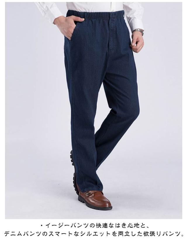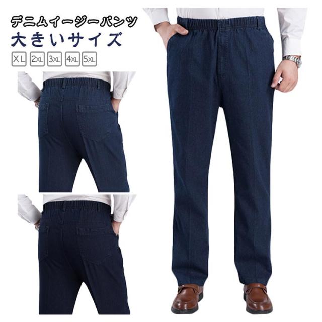 コットン メンズ ジーンズ イージーパンツ ボトム 綿 ウェストゴム 大きいサイズ 春 秋 デニムパンツ ルーズ ボトムス ルーズパンツ おしゃれ メンズパンツ