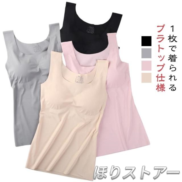 パット付 ブラトップ 2枚セット インナー ブラタンクトップ カップ付きタンクトップ 締め付けない ズレない タンクトップ ラウンドネック 肌着