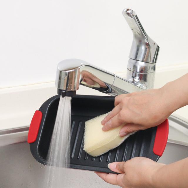 ざっと丸洗いできるので、お手入れにも手間がかかりません。内面はふっ素樹脂加工が施されているので、焦げ付きにくく汚れもするんと落とせます。