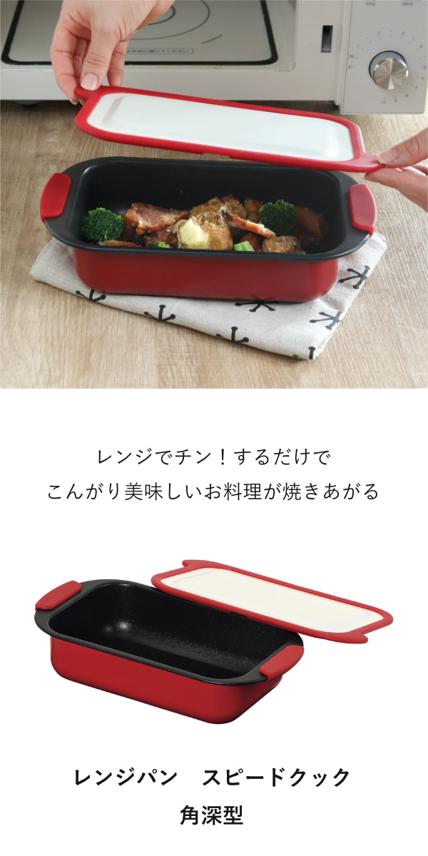 レンジパン スピードクック 角深型 電子レンジ調理器 ( 電子レンジ 調理器 魚焼き器 角型 焼き魚 電子レンジ専用調理器 電子レンジ魚焼き器 調理 魚 肉 焼く 蒸す 煮る 温め直し レシピ付き )