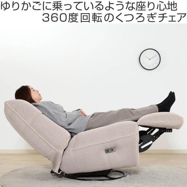 電動リクライニング ソファ 1人掛け 幅88cm メッシュ生地 MOVE ( ソファー リクライニング 電動 リビングソファ 電動ソファ 1人掛けソファ 360度回転 収納ポケット付き 通気性 リクライニングソファ USBポート フットレスト )