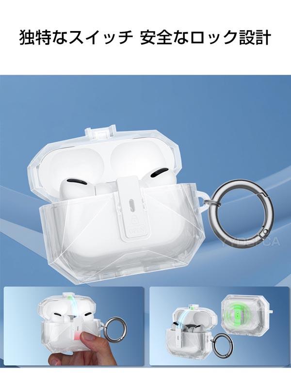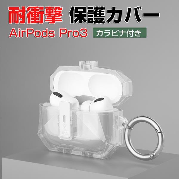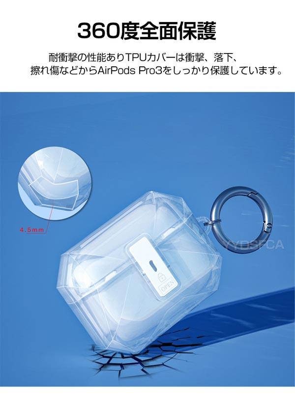 Apple AirPods Pro 3 ケース TPU素材の カバー イヤホン・ヘッドホン アクセサリー アップル エアーポッズ プロ 第3世代 CASE 耐衝撃 落下防止 収納 保護 クリアケース 実用 安全なロック 創意 人気 おすすめ カバー を装着したまま、充電タイプ可能です カラビナ付き