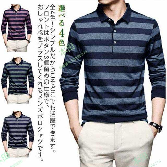 ポロシャツ メンズ 長袖 トップス ゴルフウェア 大きいサイズ ボーダー柄 コットン 40代 50代 60代 70代 Tシャツ シャツ インナー ゆっ