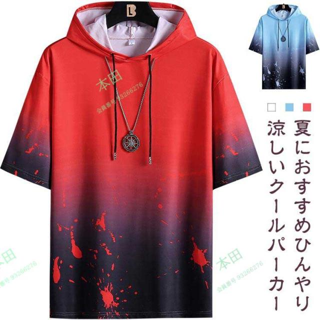 吸汗速乾 パーカー メンズ 接触冷感 夏 お得な2着セット!半袖パーカー 半袖パーカー Tシャツ プルオーバー 涼しい カジュアル 大きいサイズ 薄