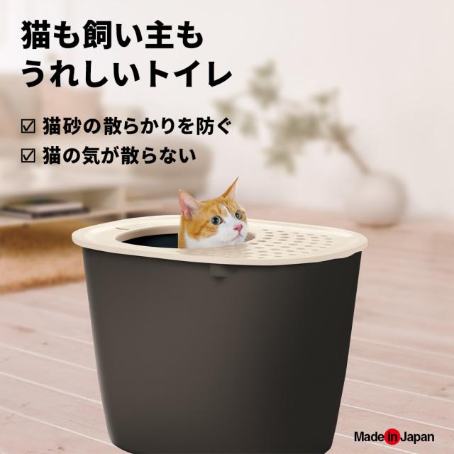 猫砂の飛び散り軽減!上から入るフルカバータイプの猫用トイレ。固まる猫砂用。