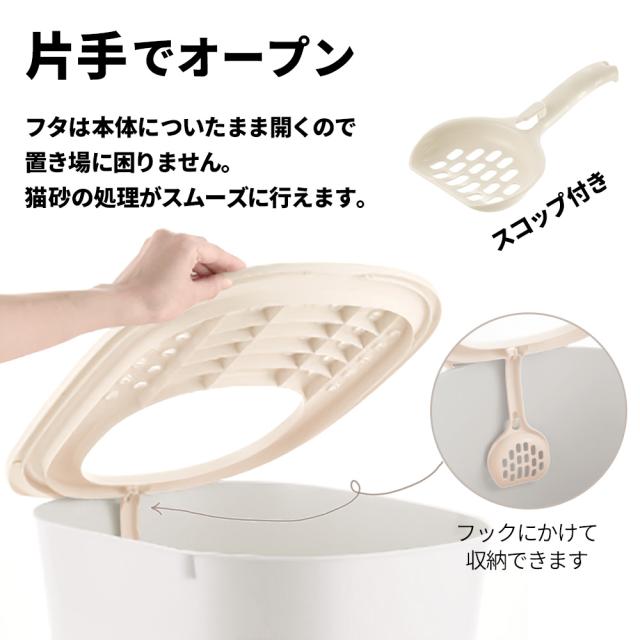 猫砂の処理ラクラクフタ(フード)は片手でパカパカ開け閉めできます。スコップ付き。