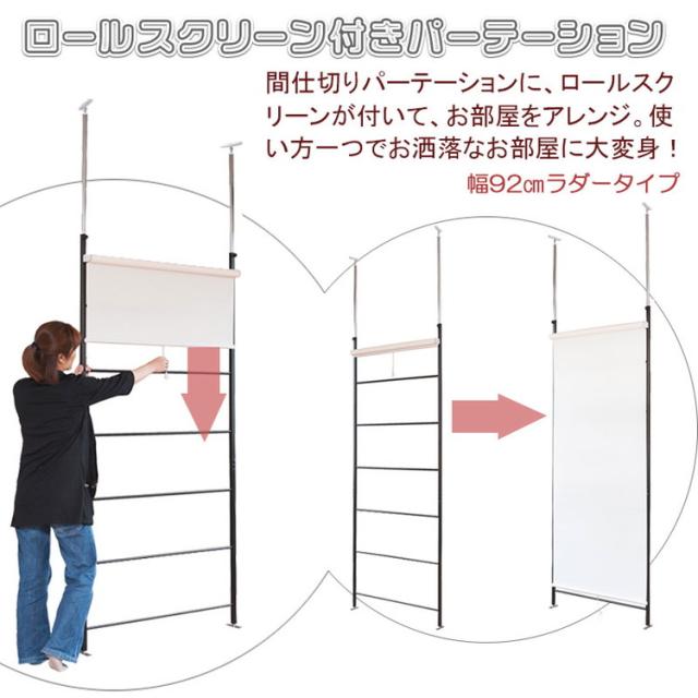 Carol ラダーパーテーション 幅92 アイボリー つっぱり ロールスクリーン 間仕切り カーテン付き 北欧インテリア テレワーク 仕切り リモートワーク オフィス 事務所(代引不可)【送料無料】