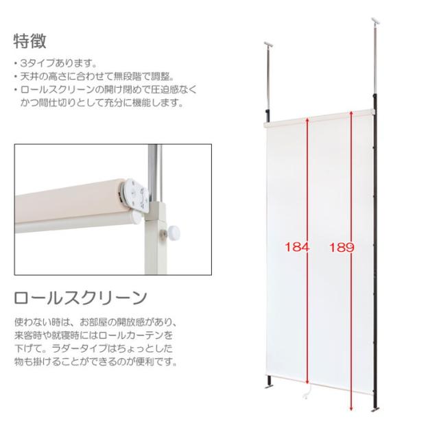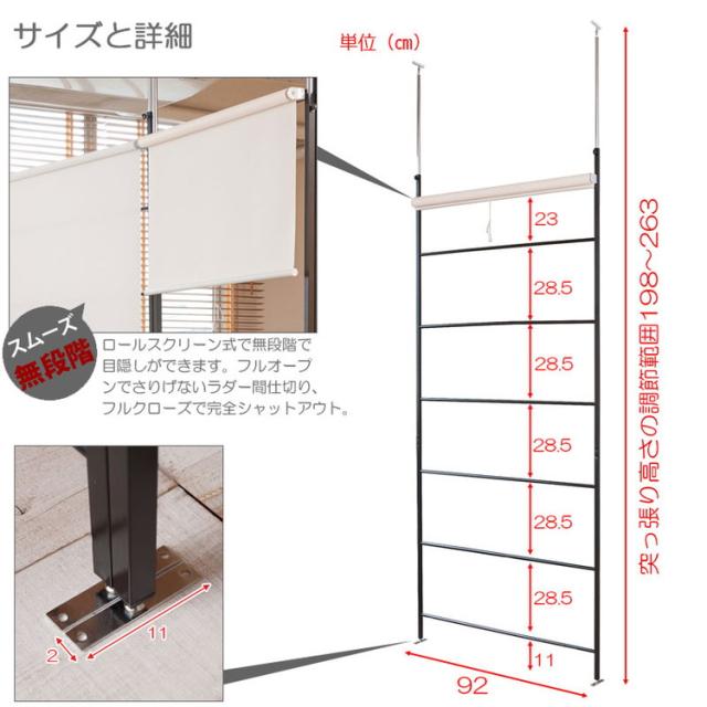 本体:(約)幅92×奥行(ロールスクリーン+支柱:8、突っ張り・脚部11)×高さ198〜263cm